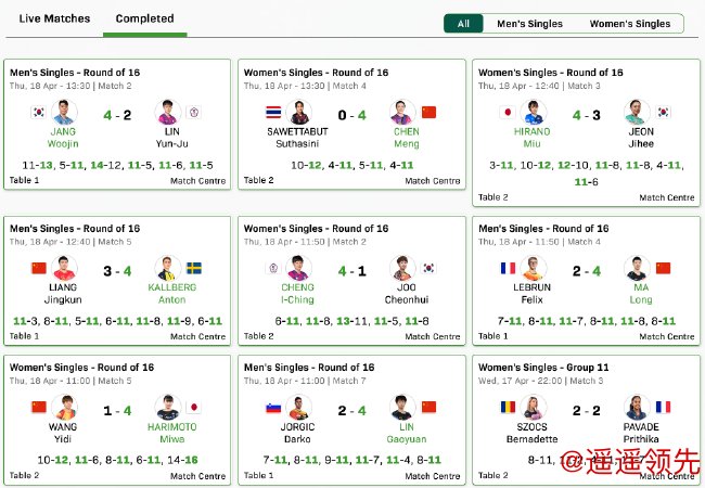 北京时间4月18日,2024澳门国际乒联男子及女子世界杯展开第四日的争夺。国乒在日场的5场比赛中取得了3胜2负,林高远、马龙和陈梦顺利晋级8强,王艺迪和梁靖崑输外战被淘汰。